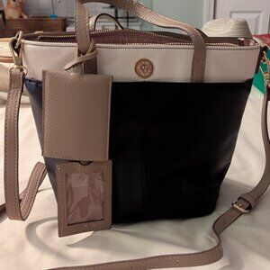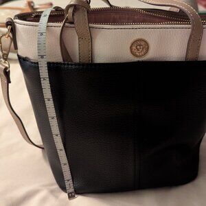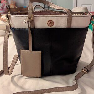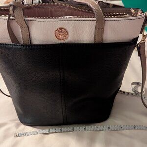 Two tone handbag. Several pockets. 49" strap (adjustable)
