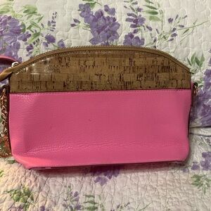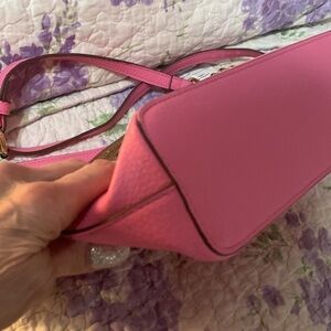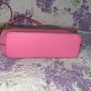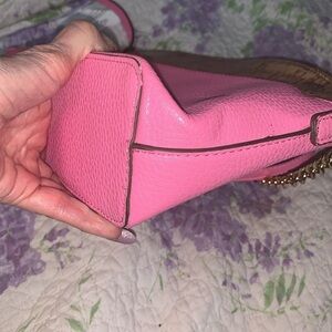 Beautiful and Klein bag Crossbody in tone snap sleeve on both sides rounded dome shape gold chain-link attaching to buckle Crossbody belt zip up closure hardware has one zip pocket three slots very cute excellent condition never used approximate measurements are
