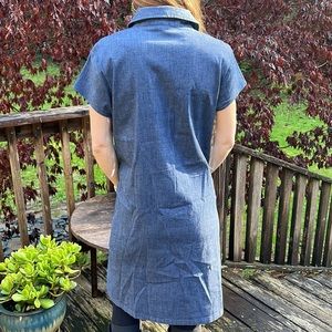 🆕Anne Kline Dark Wash denim midi dress gold zipper & button accents with logo 6