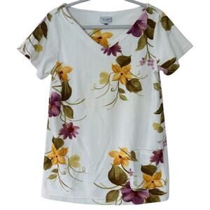 Anne Lewin New York VTG Pajama Set Women’s Small Top & Pant Floral White Purple