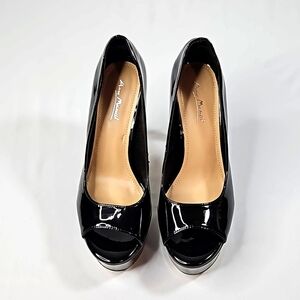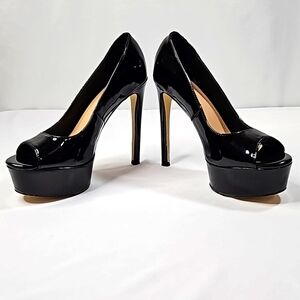 Anne Michelle Black Patent Leather Platform Heels Size 8.5