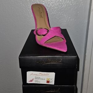 Anne Michelle Exception Pink Open Toe Slip-On Heels