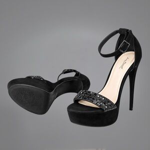 Anne Michelle “Flashback” Rhinestone Platform Heels – Faux Suede – Women’s Size 10