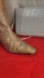 Shimmering gold sequins. Chic pointed toe. Perfect for a glamorous look. Anne Marie ankle boot. Full side zip.A little wear on the heel. Still great a great look with holiday outfits. Particularly great to dress up your favorite jeans.3.5 in heel.