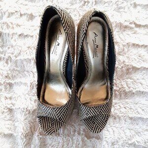 Anne Michelle Tan Woven Platform Stiletto Heels 9 High Heels