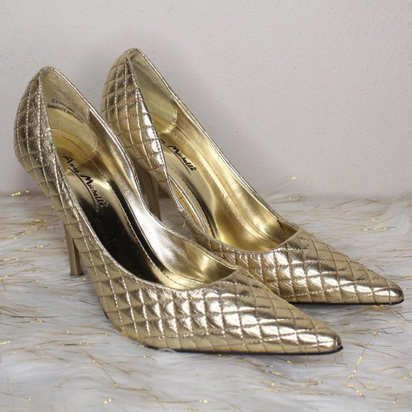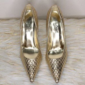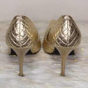 Anne Michelle Vintage Metallic Gold Quilted Heels