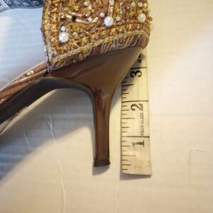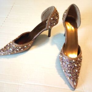 Step out in style with these elegant beaded women's heels. Perfect for any special occasion, these shoes feature intricate beadwork with a stunning tapestry cloth underneath