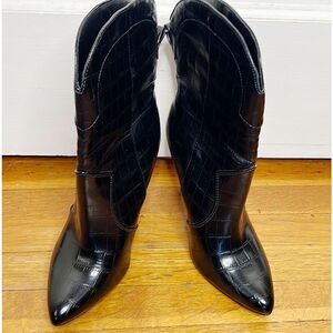 Anne Michelle Hibiscus Black Stiletto Heel Ankle Boots SIZE: 7.5