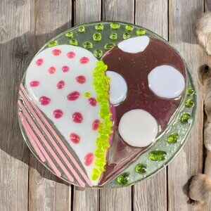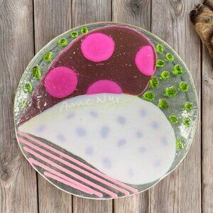 Anne Nye Fused Art Glass Fused Multicolored Round Glass Plate Dish Hand Made VTG