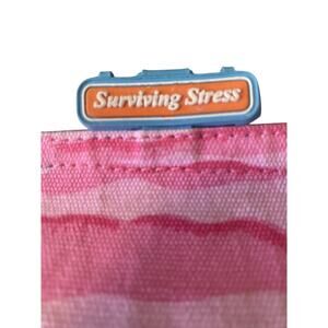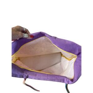 Anne Ormsby Surviving Stress Large Canvas Tote Bag Hawaiian Shirts Pink Yellow 1 inner zipped Pocket Beach Bag some wear on inside the bag
