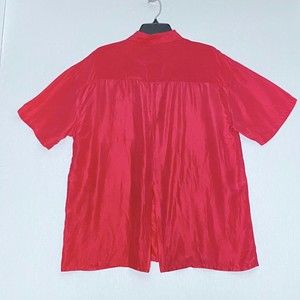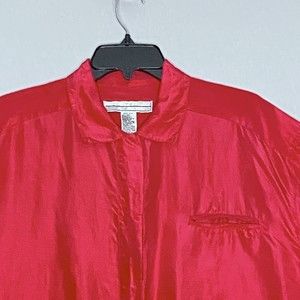 Anne Pinkerton Womens Shirt Large Red Silk Short Sleeves Breast Pocket