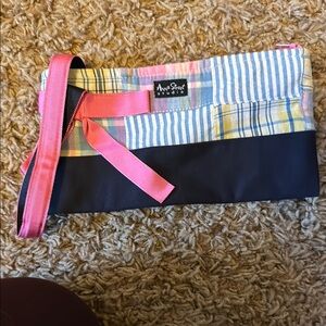 Anne Street Studio Striped and Plaid Clutch with Pink Ribbon
