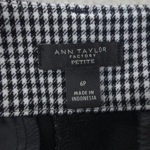 Anne Taylor Factory Pants Women's 6 Petite Black Checkered Stretch Curvy Chino