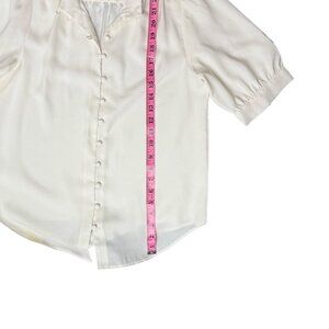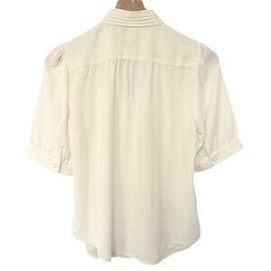 Anne Taylor Ivory Silk Button-Up High Neck Blouse Women's XS Short Sleeve