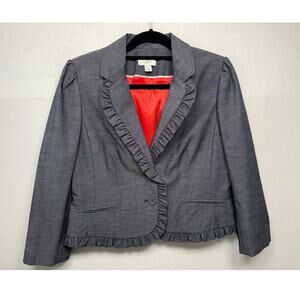 Anne Taylor Loft Chambray Blue Ruffle Blazer, Size 10 Office Career