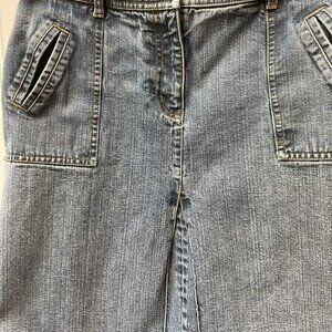 Preowned please review pics to ensure this modest Retro denim skirt will meet your standards/requirements.