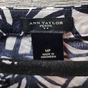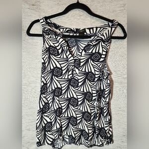 Anne Taylor Medium Petite Sleeveless V-Neck Blouse Black White