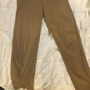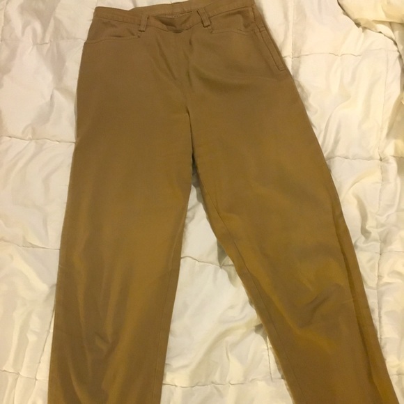 Camel color, soft fabric, front pockets, side button, taper leg