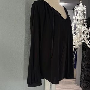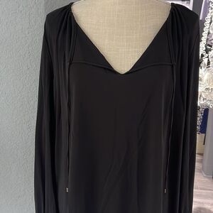 Anne Taylor black blouse with gold buttons and gold tie ends NWT