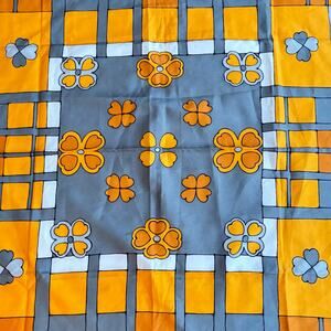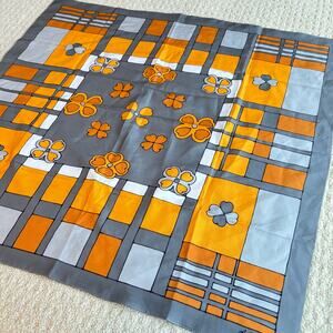 Anne Valery silky scarf mod 1970's orange blue & gray 30" square flower power