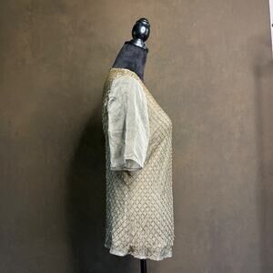 Anne Weyburn Beaded Top Embellished Scoop Neck Gold Polyester Sheer Size 14/42