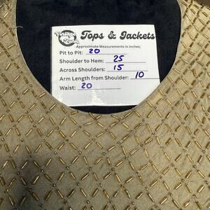 Elegant **Anne Weyburn** polyester top with lavish gold-bead grid pattern—perfect for holiday cocktails or dressy occasions. Lightweight and completely intact.