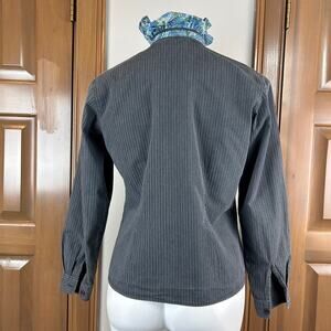 Grayish blue with tan pinstripes long sleeve Vintage 1990s Paul Harris Design button down blouse.