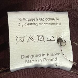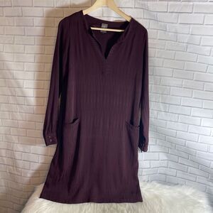 This is a beautiful classic look, loosely fitted for comfort and style. It's done in a burgundy matte stripe. Measures 19" laid flat at underarms, 38" in length. In very good pre-owned condition. Normal wear and tear noted, but no flaws or damage. Please review pictures and feel free to ask any questions or for more pictures prior to purchasing.