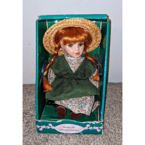Keywords: Anne of Green Gables doll, porcelain doll, collector doll, red hair doll, vintage doll, literary doll, Anne Shirley, Prince Edward Island, straw hat doll, green dress doll, gift for book lover, doll collection, nostalgic doll, character doll