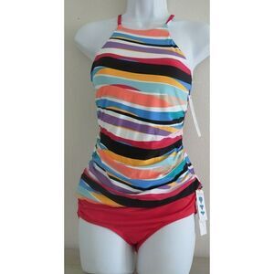 Anne Cole 21MT20686 Sz S Multicolor Striped Tankini Top, Sz XS Red Bikini Bottom