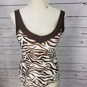 Anne Cole Brown Zebra Printed Size 12 Tankini Top Swim Suit
