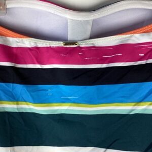 Anne Cole Liz twist front bandeau Multicolor Blue Pink Strapless Swimsuit XS