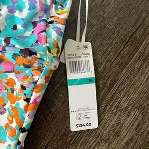 This listing is for a NWT's Anne Cole Flutter Sleeve Zip Up Rash Guard One Piece Swimsuit in size 16. This one piece swimsuit features a vibrant floral print and flutter sleeves for a touch of femininity. The zip-up front adds convenience with a sporty edge, while the high neckline and full coverage design provide extra sun protection for your days in the water. Perfect for active beach days or relaxing by the pool, it’s a practical and stylish choice for sunny adventures.
