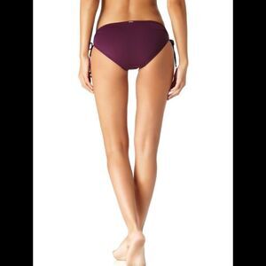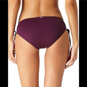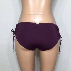 Essential bikini bottom with ruched side ties. Gold metal details.