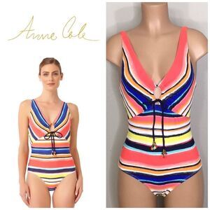 New. Colorful stripe swimsuit with keyhole opening. Tassel tie. Adjustable straps and removable soft pads. The Anne Cole Collection was created for women of every age that flatter with effortless ease. Great for hanging out on the beach or swimming in the pool.