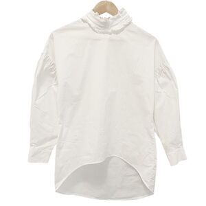 Anna Fontaine Sinara top with ruffle details on collar and shoulders. Little dirt mark on shoulder ruffle which can be removed after washing/dry cleaning.