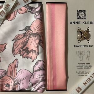 AnneβKlein Blush Pink Coral Ivory Scarf Floral Twilly Ring Gift Set