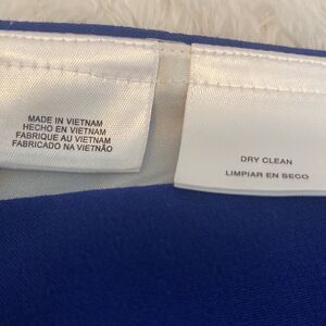 Anne Klein Colorblock Mini Skirt Size 2. Black and blue stripes on a white background. Back zipper closure, fully lined. Gently used condition with no visible flaws.