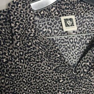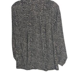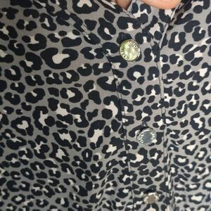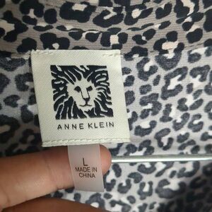 Anne Klein Gray Leopard Animal Print Button Front Blouse L Large