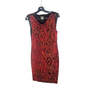 Anne Klein Memling Red Python Draped Neck Faux Leather Midi Dress 8