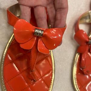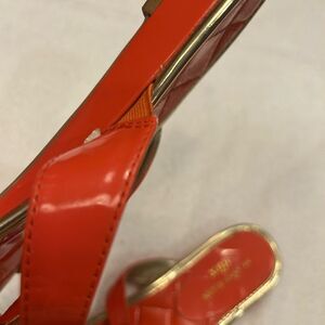 These Anne Klein sandals feature a vibrant red hue complemented by elegant gold accents, perfect for adding a pop of color to your summer wardrobe. The thong-style strap offers a casual yet chic look, while the flat design ensures comfort for all-day wear. Ideal for warm weather outings, these sandals combine style and ease effortlessly.