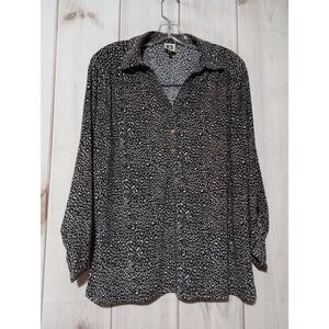 Anne Klein Shirt Ladies Large Animal Print 3/4 Sleeve VNECK
