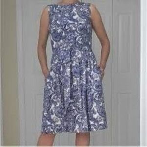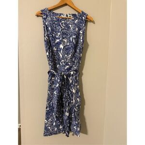 Anne Klein Sz 8 Sleeveless A-Line Dress Blue Paisley Preppy Old Money Aesthetic