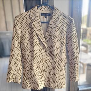 Stylish tan blazer with floral dots. Classic design. Perfect for any occasion.