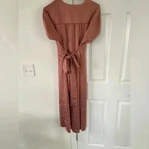 AnneKlein V neck satin midi dress in Rose