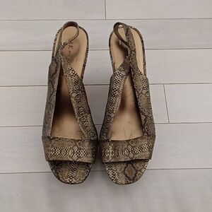 Anne Klein Women's AK Fortuna Snake Skin Pattern Wedge Slingback Sandals 9.5M