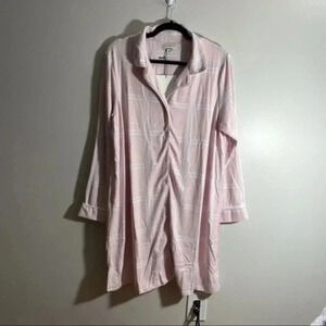 Anne Klein long sleeve notch plaid sleep shirt Pink medium