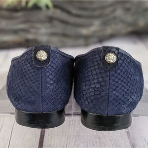 These Anne Klien classic but feminine iflex flats have a textured reptile look with a pointy toe. Geared towards the professional, executive and classic woman that looks for functional and fashionable shoes.