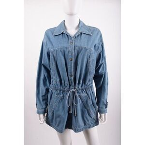 Anne Klein Denim Vintage Womans Jacket Coat Size M Blue Drawstring