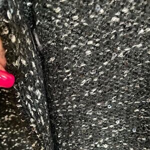 Like new quality made cardigan. Top decorative button and other buttons are hidden. Great look! Sequins throughout fabric for a little sparkle.